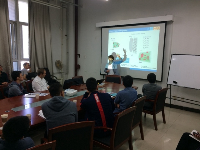 在兩位教授精彩的報(bào)告之后,薛云飛課題組的趙亞凱博士后就課題組近期的主要科研成果做了介紹,雙方在此基礎(chǔ)上進(jìn)行了深入的交流,對今后開展項(xiàng)目合作及課題組之間的訪問交流進(jìn)行了探討,為雙方進(jìn)一步合作奠定了基礎(chǔ)。