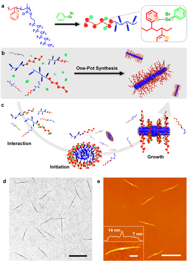 通過高效和通用的方法控制納米尺度粒子的組裝,同時對形貌和尺寸進(jìn)行精確控制,歷來是材料科學(xué)及化學(xué)領(lǐng)域最吸引人及最具有挑戰(zhàn)的研究課題之一。近年來,超分子聚合領(lǐng)域的發(fā)展為設(shè)計和制備結(jié)構(gòu)復(fù)雜、多功能性的人工結(jié)構(gòu)提供了一個有趣的思路。其中,很多納米結(jié)構(gòu)的合成及制備都是通過“引發(fā)-生長”機(jī)制(或者稱為“種子生長”)來實現(xiàn)的。然而,在大多數(shù)情況下,由于超分子相互作用的動態(tài)特質(zhì),這些基于非共價作用的超分子聚合物納米結(jié)構(gòu)的穩(wěn)定性較低,為其尺寸的精確控制和后續(xù)功能化帶來了難度。