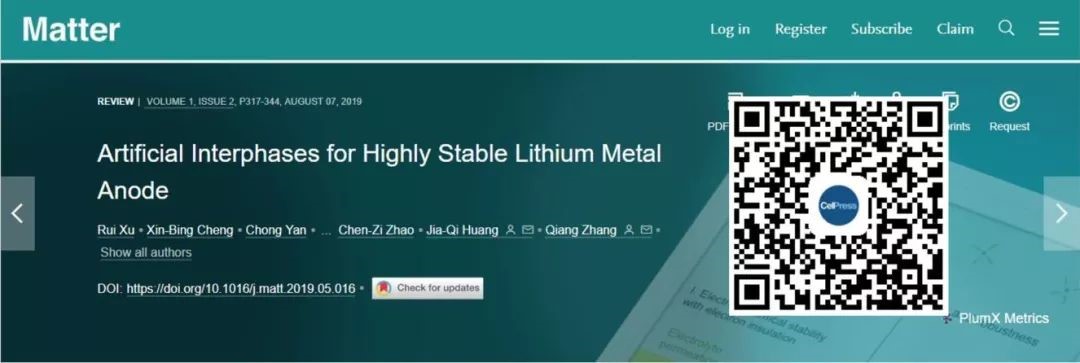近日,北京理工大學(xué)前沿交叉院黃佳琦教授課題組聯(lián)合清華大學(xué)張強(qiáng)教授在Cell Press細(xì)胞出版社旗下材料學(xué)旗艦期刊Matter上發(fā)表綜述文章,系統(tǒng)總結(jié)了鋰金屬與液(固)電解質(zhì)之間界面設(shè)計(jì)的最新研究成果,并且對(duì)領(lǐng)域發(fā)展提出了展望。該工作第一單位為北京理工大學(xué),第一作者為材料學(xué)院/前沿交叉院博士研究生許睿。原文鏈接為:https://www.cell.com/matter/fulltext/S2590-2385(19)30041-4