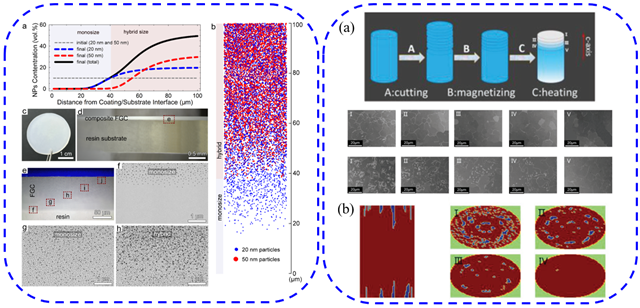 圖2 磁場調(diào)控混合磁性顆粒的梯度分布,退磁場誘導(dǎo)的表面退磁疇結(jié)構(gòu)