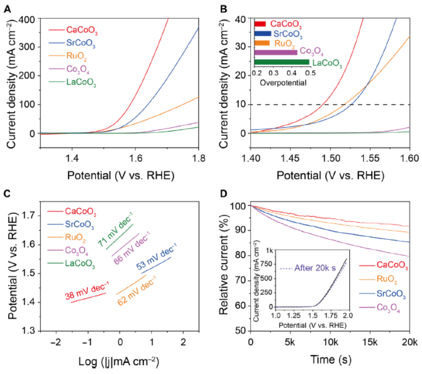 圖2 CaCoO3 和SrCoO3與其它催化劑的OER性能對比