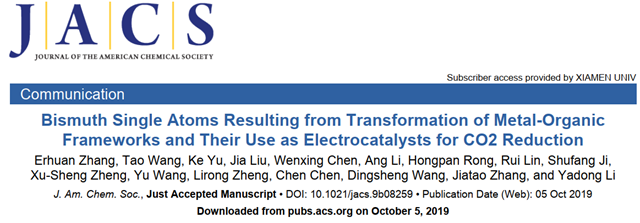 近日,北京理工大學(xué)材料學(xué)院張加濤課題組將無機納米界面合成化學(xué)推進(jìn)到單原子精度,與清華大學(xué)李亞棟院士、王定勝副教授團(tuán)隊合作,在Bi單原子催化劑精準(zhǔn)制備及電催化CO2還原性能研究方面取得突破性進(jìn)展,以“Bismuth Single Atoms Resulting from Transformation of Metal-Organic Frameworks and Their Use as Electrocatalysts for CO2 Reduction”為題,于10月5日在材料、化學(xué)領(lǐng)域的頂級期刊《Journal of the American Chemical Society》上在線發(fā)表, 2019, 10.1021/jacs.9b08259 (https://pubs.acs.org/doi/10.1021/jacs.9b08259)。