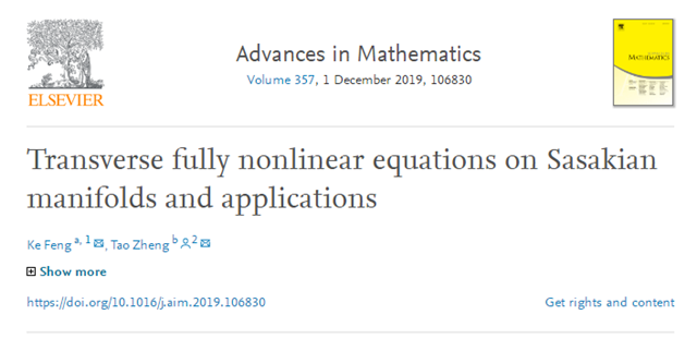 日前,北京理工大學(xué)數(shù)學(xué)與統(tǒng)計學(xué)院鄭濤副研究員在數(shù)學(xué)頂級學(xué)術(shù)期刊《Advances in Mathematics》在線發(fā)表題為“Transverse fully nonlinear equations on Sasakian manifolds and applications”的研究論文。該論文研究了Sasaki流形上一類完全非線性方程的可解性,作為幾何應(yīng)用,證明了Sasaki流形上橫截(強(qiáng))Gauduchon度量和橫截平衡度量的Calabi-Yau型定理。論文同時指出,這類完全非線性方程在復(fù)余維為n的緊致無邊具有橫截Hermite度量的緊葉層流形上也是可解的,作為幾何應(yīng)用,論文給出了橫截Hermite度量和橫截(強(qiáng)) Gauduchon度量的Calabi-Yau型定理。
