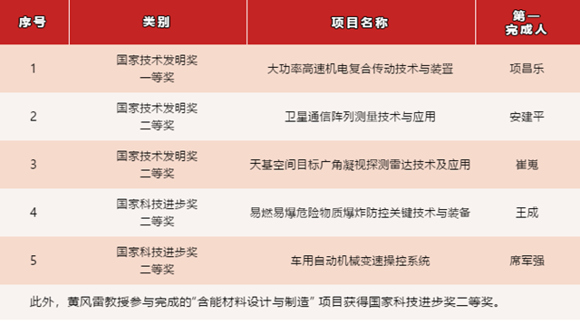 北京理工大學牽頭的5項成果獲國家科學技術獎,其中國家技術發(fā)明獎一等獎1項、國家技術發(fā)明獎二等獎2項、國家科技進步獎二等獎2項。項昌樂院士作為獲獎代表上臺領獎。