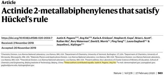 北理工謝靜教授在Nature上發(fā)表錒系金屬讓芳香性/反芳香性共存的合作論文