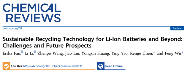 北京理工大學(xué)在Chem. Rev.上發(fā)表《鋰離子電池及電池新體系的可持續(xù)回收技術(shù):挑戰(zhàn)和未來(lái)前景》綜述文章