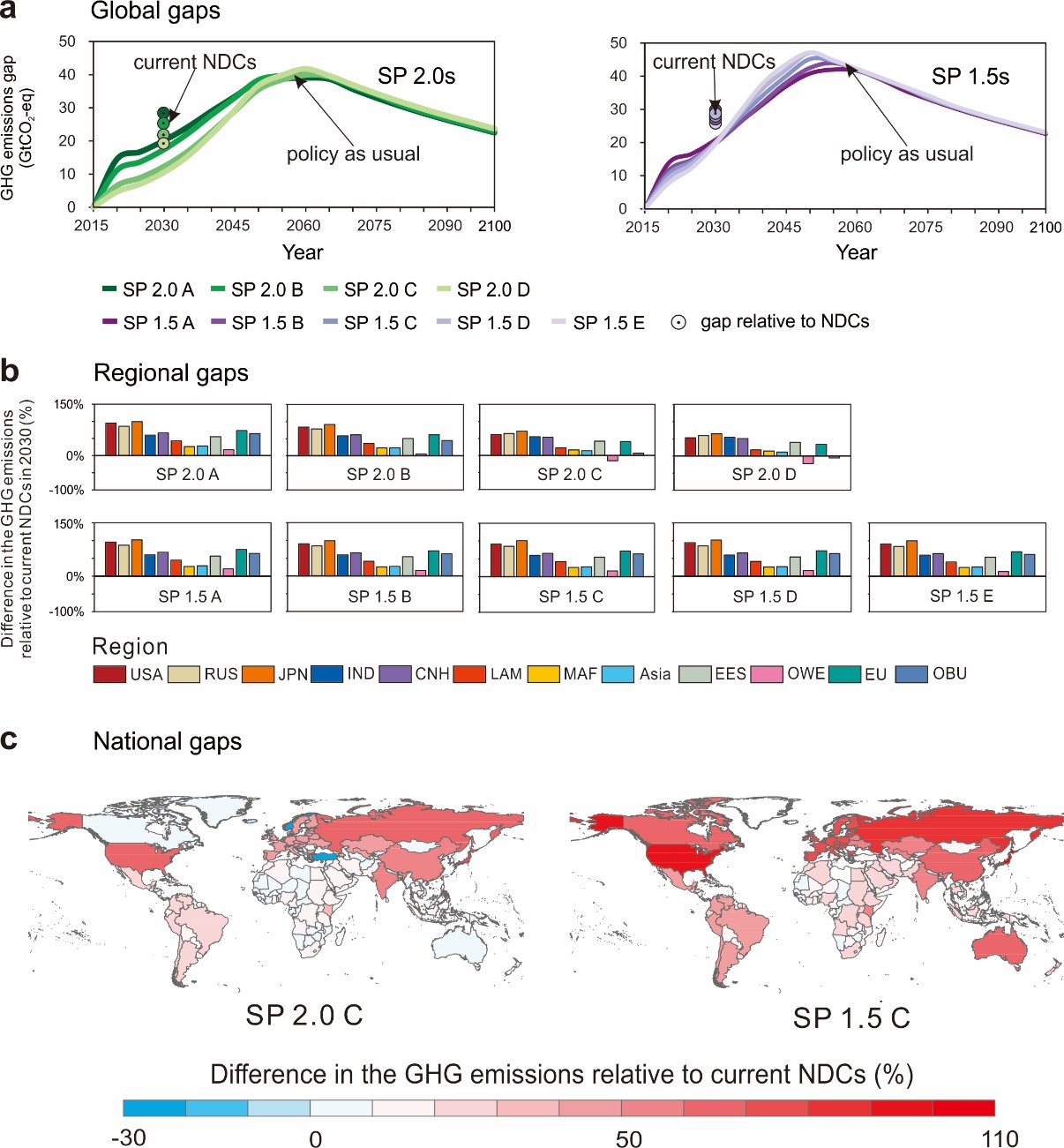 應(yīng)對氣候變化需要全球各國集體行動。2015年12月,締約方通過《巴黎協(xié)定》,并明確了本世紀末將全球溫升控制在不超過工業(yè)化前2度的目標,并將1.5度溫控目標確立為應(yīng)對氣候變化的長期努力方向?!栋屠鑵f(xié)定》規(guī)定各締約方每五年提交一次“國家自主減排貢獻”(NDC),由各國自主制定減排目標。但現(xiàn)有多數(shù)研究表明,國家自主減排貢獻無法滿足2度和1.5度溫控目標的要求。為使NDC與全球溫控目標不斷趨近,《巴黎協(xié)定》設(shè)置了動態(tài)評估機制,要求各國依據(jù)自身減排能力逐期增加減排量。然而,出于短期經(jīng)濟發(fā)展考慮,國家或地區(qū)可能拒絕增強短期行動力度,這對后巴黎時代全球氣候治理提出了嚴峻挑戰(zhàn)。在此背景下,量化溫控目標下的各國行動方案對應(yīng)的潛在收益和成本,有助于提高國家應(yīng)對氣候變化的積極性,推動全球氣候治理進程。