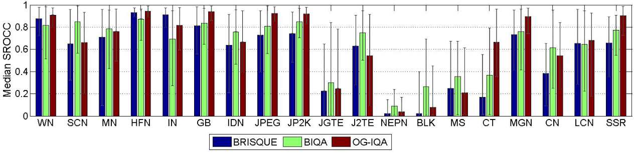 獲獎(jiǎng)?wù)撐挠?016年1月發(fā)表在該領(lǐng)域國(guó)際重要期刊Signal Processing: Image Communication(SPIC)上,受到了國(guó)家自然科學(xué)基金重點(diǎn)項(xiàng)目資助。該論文提出了一種基于梯度關(guān)聯(lián)性的無參考圖像質(zhì)量評(píng)價(jià)方法(OG-IQA),較好地解決了傳統(tǒng)的圖像梯度信息無法準(zhǔn)確描述圖像失真程度的問題。該方法將傳統(tǒng)的梯度信息以梯度相對(duì)變化的方式表示,并使用相鄰梯度之間的關(guān)聯(lián)性來增強(qiáng)對(duì)圖像失真程度的描述,之后利用 AdaBoosting BP神經(jīng)網(wǎng)絡(luò)建立圖像特征到圖像質(zhì)量的映射關(guān)系。該方法在多個(gè)圖像庫(kù)上均能取得較好的性能。