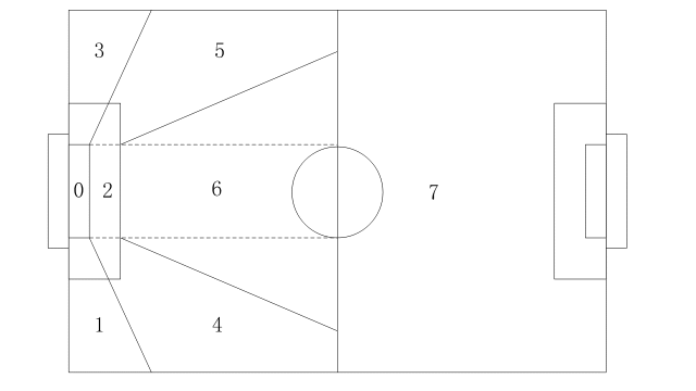 經過對場地劃分之后,守門員對球場上任意位置的來球都能做出最合理的移動站位和最正確的處理行為,降低了守門員防守的代價,提高了防守的成功率。