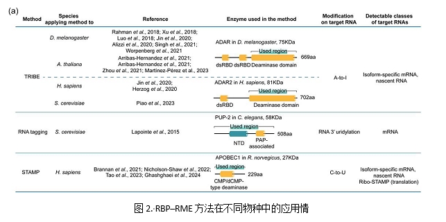 本實(shí)驗(yàn)室和其他研究團(tuán)隊(duì)的研究成果顯示,HyperTRIBE具有無需抗體、背景低、靈敏度高、重復(fù)性好、文庫制備過程簡單等優(yōu)勢,為釀酒酵母、哺乳動物、果蠅和植物中RBP靶標(biāo)的鑒定提供了可靠的策略(圖2)。未來針對編輯酶的改造和其他RBP-RME方法的改進(jìn),將進(jìn)一步提高RBP的RNA靶標(biāo)鑒定效率并加深對生物學(xué)原理和人類健康與疾病的理解。