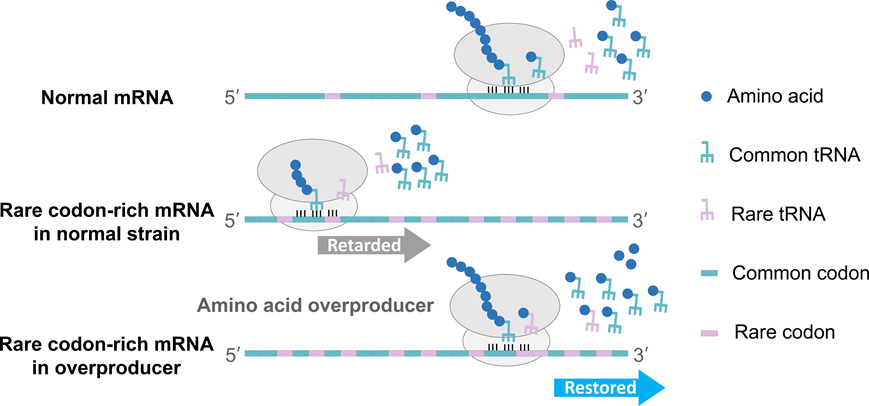 圖2 基于稀有密碼子的氨基酸高產(chǎn)菌株篩選策略的原理