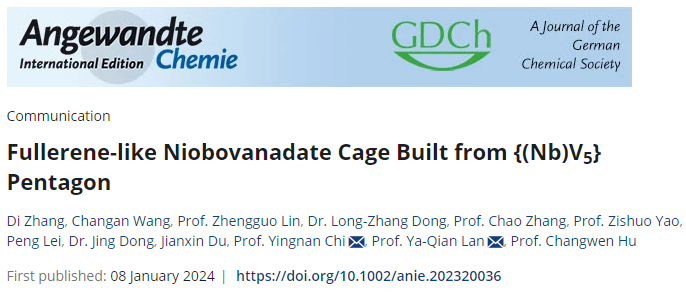 近期,北京理工大學(xué)化學(xué)與化工學(xué)院胡長文教授和遲瑛楠教授團(tuán)隊在基于{Nb(V5)}五角星的類富勒烯鈮釩籠簇構(gòu)筑方面取得重要進(jìn)展。相關(guān)成果以“Fullerene-like Niobovanadete Cage Built from{Nb(V5)} Pentagon”為題,發(fā)表在化學(xué)領(lǐng)域國際頂級期刊《Angewandte Chemie International Edition》(2024, e202320036)上。北京理工大學(xué)化學(xué)與化工學(xué)院遲瑛楠教授和華南師范大學(xué)蘭亞乾教授為共同通訊作者,北京理工大學(xué)為第一通訊單位,化學(xué)與化工學(xué)院博士研究生張迪為該論文的第一作者。