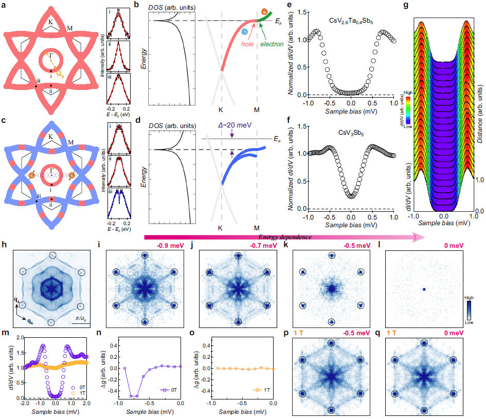 近日,北京理工大學(xué)物理學(xué)院王秩偉研究員、姚裕貴教授團(tuán)隊(duì),與中國(guó)科學(xué)技術(shù)大學(xué)何俊峰教授、喬振華教授,以及中科院物理研究所高鴻鈞院士等人合作在《自然通訊》(Nature Communications)發(fā)表了對(duì)籠目結(jié)構(gòu)超導(dǎo)材料CsV3-xTaxSb5中范霍夫奇點(diǎn)(von Hove Singularity, VHS)的研究。