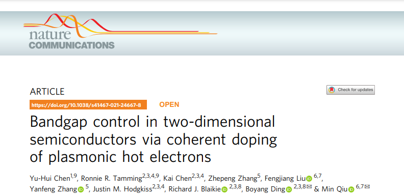日前,北京理工大學物理學院張向東教授課題組青年教師陳宇輝研究員與新西蘭維多利亞惠靈頓大學、奧塔哥大學,以及北京大學和西湖大學的研究者開展合作,在表面等離子體光學腔和二維半導體二硫化鎢的復合體系上,通過利用光和物質強耦合效應,在實驗上實現(xiàn)了對二硫化鎢的高效熱電子摻雜,大幅改變了二硫化鎢原有的帶隙,相關研究成果發(fā)表在國際頂級期刊《自然·通訊》上。