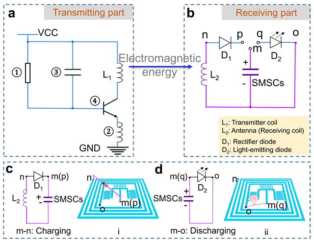 之后,研究者將該一體化器件作為無(wú)線(xiàn)接收器用于無(wú)線(xiàn)充電系統(tǒng)中,檢測(cè)其充電和儲(chǔ)能性能。