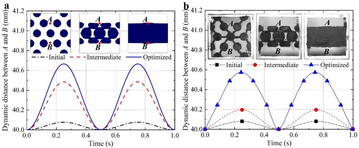 圖2 介電彈性體軟作動器電極拓?fù)鋬?yōu)化:(a) 計(jì)算結(jié)果; (b) 實(shí)驗(yàn)結(jié)果