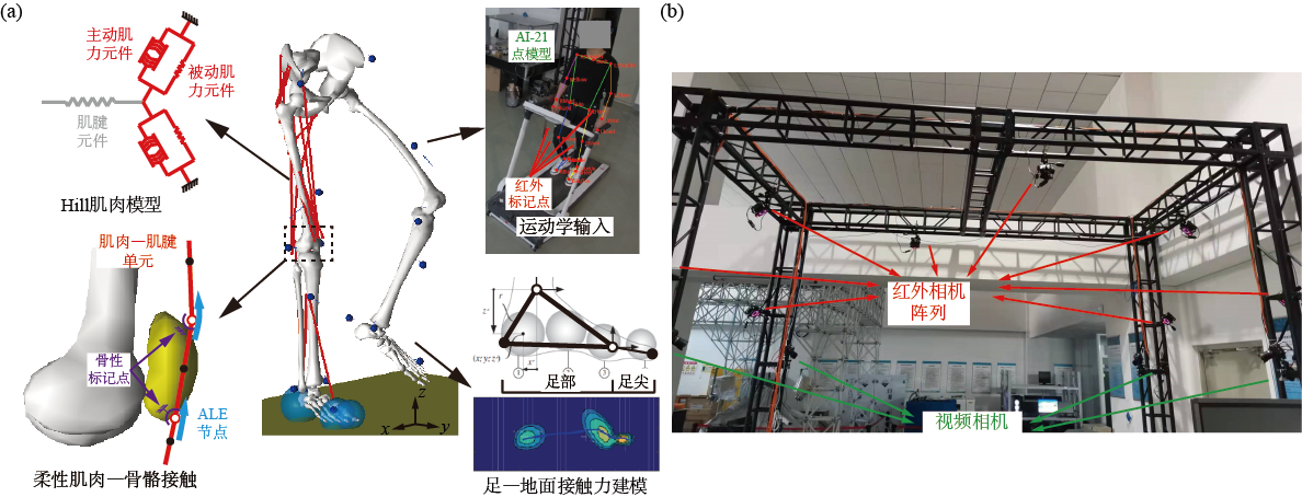 圖4 人體肌骨系統(tǒng)多體動力學(xué)模擬與混合動作捕捉實(shí)驗(yàn)平臺