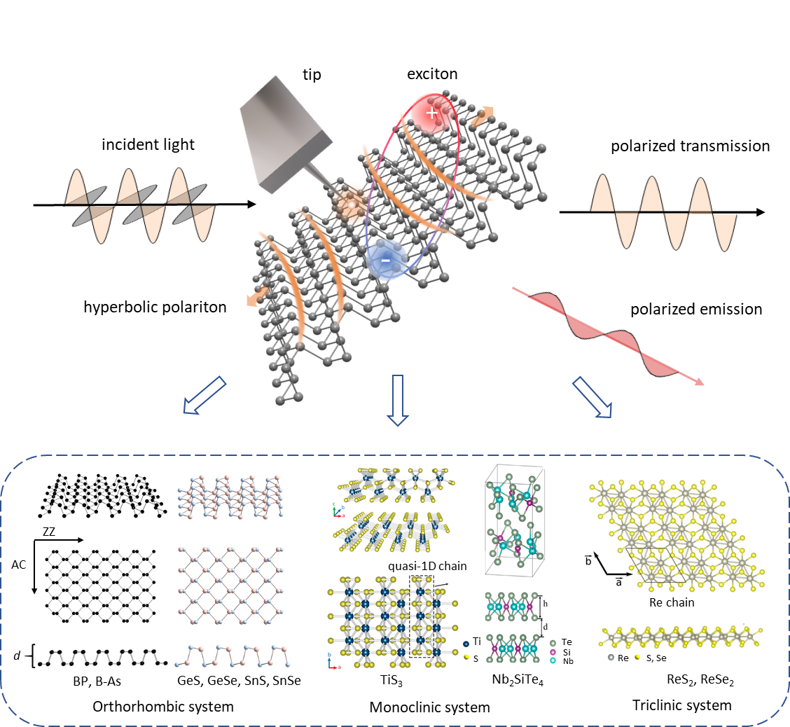 日前,北京理工大學(xué)物理學(xué)院姚裕貴團(tuán)隊成員王沖特別研究員與復(fù)旦大學(xué)物理系晏湖根教授合作在光學(xué)權(quán)威期刊《Photonics Insights》發(fā)表關(guān)于低維二維材料光學(xué)與極化激元性質(zhì)的綜述論文。該綜述系統(tǒng)總結(jié)了在各類低對稱性的二維材料中的光學(xué)性質(zhì)和極化激元的最新研究進(jìn)展,重點(diǎn)介紹了各向異性的帶間吸收、發(fā)光、激子效應(yīng)、非線性光學(xué),以及各種雙曲極化激元的探測、調(diào)控及應(yīng)用,并且對該領(lǐng)域未來的研究方向給出了展望。