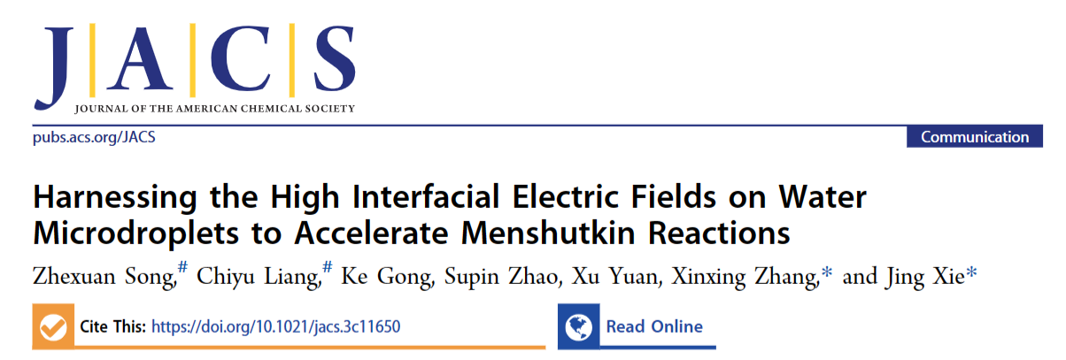 近日,北京理工大學化學與化工學院謝靜教授團隊和南開大學張新星教授團隊合作,在微液滴加速有機化學反應方面取得進展。相關(guān)研究成果以“Harnessing the High Interfacial Electric Fields on Water Microdroplet to Accelerate Menshutkin Reactions”為題發(fā)表于國際權(quán)威期刊《Journal of the American Chemical Society》。北京理工大學謝靜教授和南開大學張新星教授為論文共同通訊作者,北京理工大學為第一單位。該研究課題得到了國家自然科學基金項目、北京理工大學特立青年學者項目等資助。