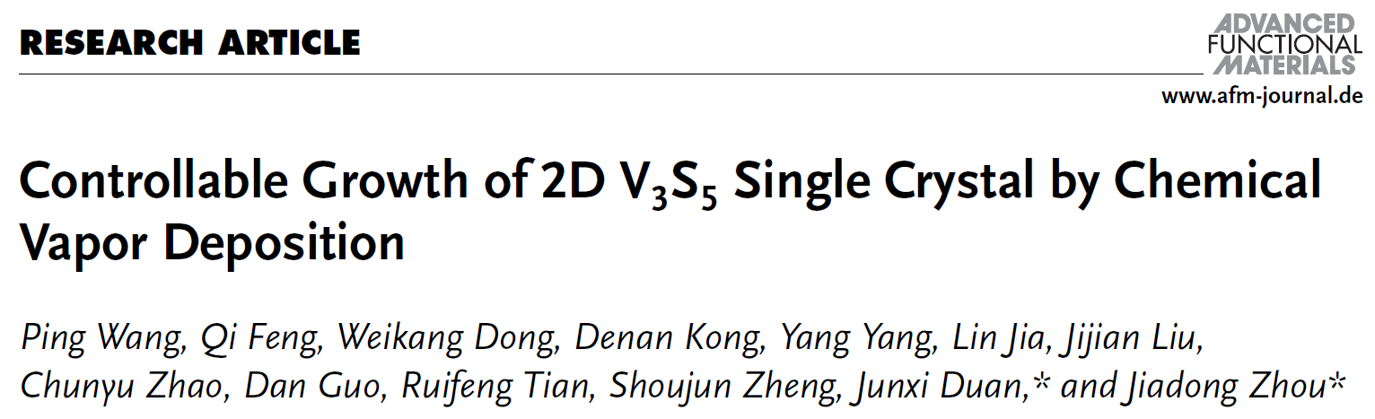 日前,北京理工大學物理學院周家東教授與段俊熙副研究員開展合作,在二維釩基自插層硫族化合物的體系中,通過化學氣相沉積方法,基于二元金屬前驅體共反應機制,可控合成二維自插層V3S5晶體材料,并研究其相關物性。相關研究成果發(fā)表在國際頂刊《Advanced Functional Materials》上。