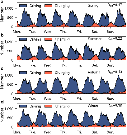 圖2. 目標(biāo)區(qū)域不同季節(jié)輕型電動(dòng)汽車(chē)群體中活躍車(chē)輛對(duì)比