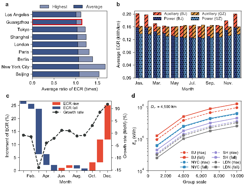 隨著世界范圍電動(dòng)汽車(chē)大規(guī)模部署,電動(dòng)汽車(chē)行業(yè)對(duì)動(dòng)力電池資源和城市能源的需求快速增長(zhǎng),評(píng)估城市電動(dòng)汽車(chē)動(dòng)力電池利用和能量消耗情況具有重要意義。該論文首次將電動(dòng)汽車(chē)大數(shù)據(jù)引入到動(dòng)力電池資源、城市能源相關(guān)領(lǐng)域,突破了電動(dòng)汽車(chē)動(dòng)力電池利用和能量消耗大規(guī)模評(píng)估的難題,對(duì)全球電動(dòng)汽車(chē)大規(guī)模發(fā)展中所涉及的動(dòng)力電池資源、能源、碳排放等方面研究具有重要意義。該論文通過(guò)結(jié)合大規(guī)模城市電動(dòng)汽車(chē)數(shù)據(jù)、統(tǒng)計(jì)學(xué)方法和人工智能算法,報(bào)告了電動(dòng)汽車(chē)大規(guī)模應(yīng)用與小規(guī)模應(yīng)用所不同的重要規(guī)律,如動(dòng)力電池利用率差異性和電動(dòng)汽車(chē)能量消耗季節(jié)性波動(dòng)。引入氣候數(shù)據(jù),將模型拓展到世界多個(gè)地區(qū),對(duì)比分析了電動(dòng)汽車(chē)動(dòng)力電池利用率、能耗相關(guān)重要規(guī)律在世界不同地域的差異性。例如,在北京地區(qū),即使電動(dòng)汽車(chē)的月行駛需求不變,季節(jié)變換帶來(lái)的電動(dòng)汽車(chē)群體平均能量消耗差異最高可達(dá)21%。