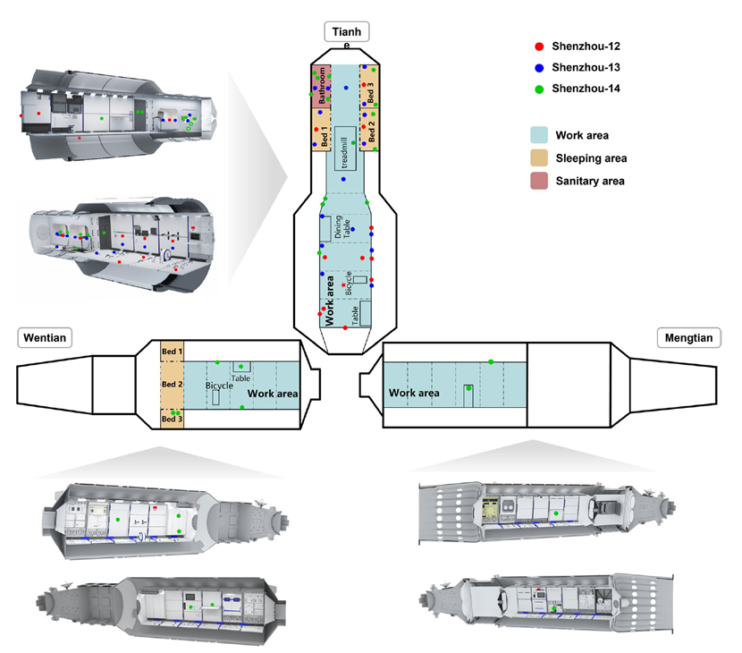 在軌空間站艙內(nèi)有很多背板狹縫區(qū)域是航天員的“不可及”區(qū)域,常爆發(fā)微生物卻很難被清理到,所以是在軌空間站的微生物防控工作應給予關注的重點區(qū)域。該論文首次全面研究了建造期在軌中國空間站中“不可及”區(qū)域的微生物的來源、數(shù)量豐度及群落演替規(guī)律。神舟12到神舟14乘組在軌執(zhí)行任務期間,協(xié)助研究項目組在核心艙、夢天實驗艙和問天實驗艙的工作區(qū)、衛(wèi)生區(qū)和睡眠區(qū)總共采集了50個在軌微生物樣品。研究分析了這些區(qū)域的可培養(yǎng)及全部微生物污染數(shù)量范圍以及高豐度的微生物種類。結(jié)果表明,乳酸桿菌作為一種人體益生菌廣泛分布于艙內(nèi)所有區(qū)域,艙內(nèi)不存在強致病菌但存在多種條件致病菌。艙內(nèi)沒有糞便源微生物污染,所有微生物有58.8%來源于航天員的皮膚及口腔,艙內(nèi)所有區(qū)域的微生物污染類群會隨乘組更替發(fā)生顯著性變化,天和核心艙的生物標志物是一株來源于植物的寡養(yǎng)單胞菌。所有結(jié)果一定程度指示著,在軌中國空間站后期微生物安全防控工作可以在人源和植物源的微生物的污染方面加大防控力度,尤其是在軌開展相關植物培養(yǎng)實驗過程中應盡量控制根際土壤微生物擴散到艙內(nèi)空氣和航材表面等。
