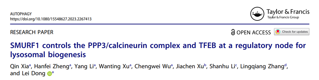 近日,北京理工大學(xué)生命學(xué)院董磊教授研究團隊在國際自噬領(lǐng)域頂級期刊《Autophagy》上發(fā)表成果“SMURF1 controls PPP3/calcineurin complex and TFEB at a regulatory node for lysosomal biogenesis”,揭示了SMURF1通過調(diào)控TFEB核轉(zhuǎn)位激活促進腫瘤細胞溶酶體再平衡的新機制。