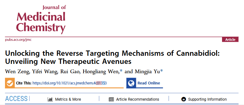 8月2日,北京理工大學(xué)化學(xué)與化工學(xué)院于明加副研究員和溫鴻亮副教授帶領(lǐng)的團(tuán)隊(duì)在國(guó)際權(quán)威期刊Journal of Medicinal Chemistry發(fā)表了題為“Unlocking the Reverse Targeting Mechanisms of Cannabidiol: Unveiling New Therapeutic Avenues”的研究論文(DOI: 10.1021/acs.jmedchem.4c01353)。該團(tuán)隊(duì)在針對(duì)大麻二酚分子機(jī)制的深入研究中取得了重要進(jìn)展,特別是其作為部分激動(dòng)劑與GPR18靶點(diǎn)蛋白相互作用方面的新發(fā)現(xiàn)。這一成果不僅加深了我們對(duì)大麻二酚生物活性的理解,也為未來基于大麻二酚的新型藥物的開發(fā)奠定了理論基礎(chǔ)。