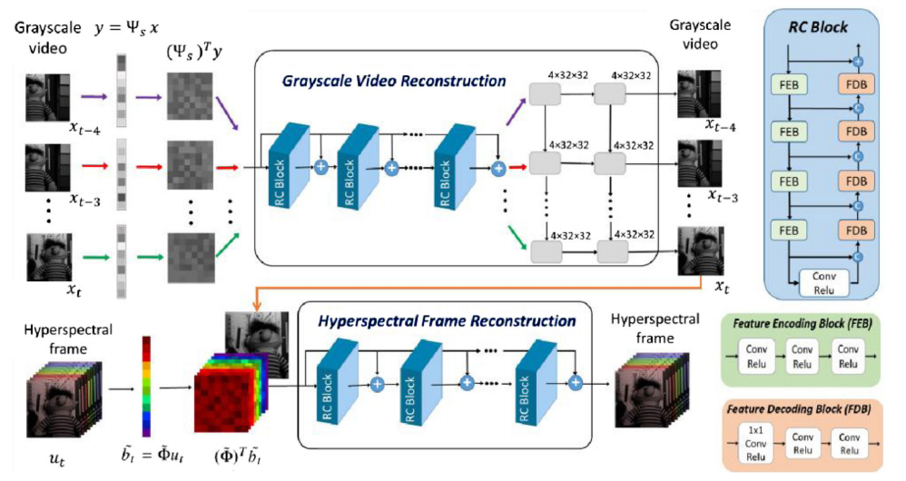 圖3 高光譜視頻重建的深度學(xué)習(xí)方法示意圖