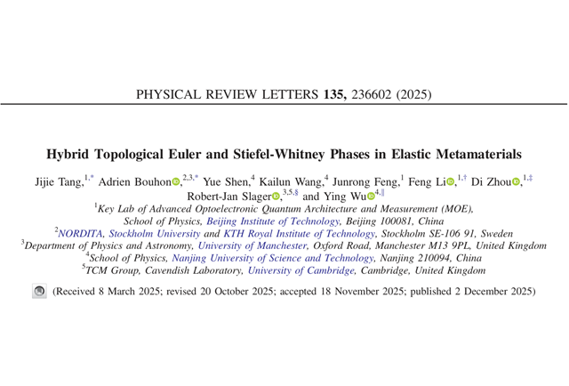 日前,北京理工大學(xué)物理學(xué)院張向東教授課題組在拓?fù)潆娐泛碗p曲晶格拓?fù)浔闷?..