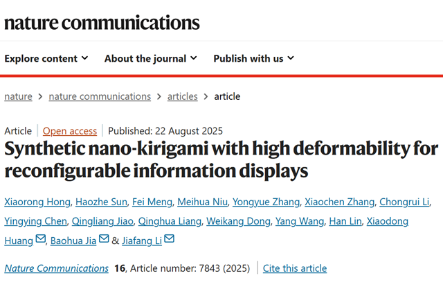 近日,北京理工大學(xué)劉佳、張加濤教授團(tuán)隊(duì)與國家納米中心唐智勇院士團(tuán)隊(duì)合作...