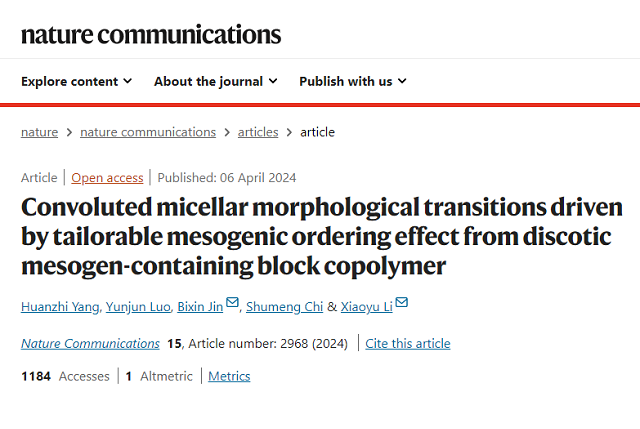近日,北京理工大學材料學院李霄羽課題組提出了一種基于盤狀液晶嵌段共聚物...
