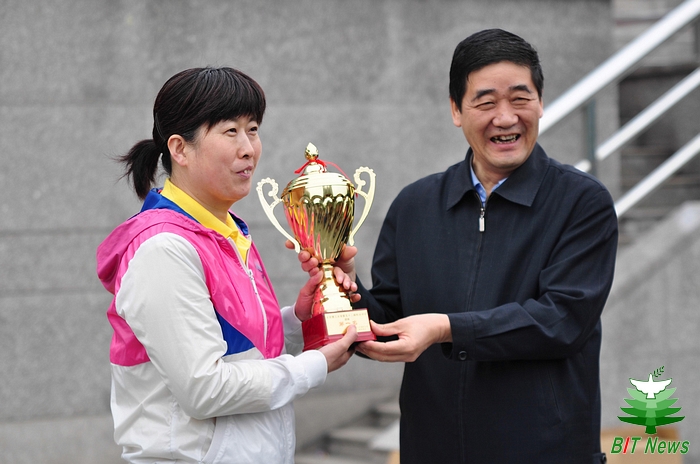 本次教職工運(yùn)動(dòng)會(huì)共有田徑項(xiàng)目24項(xiàng)、項(xiàng)目15項(xiàng)趣味、表演項(xiàng)目1項(xiàng)、黨政工接力表演1項(xiàng)。經(jīng)過緊張激烈的比賽,后勤集團(tuán)、機(jī)關(guān)單位、管理與經(jīng)濟(jì)學(xué)院、機(jī)電學(xué)院、信息學(xué)院、基礎(chǔ)教育學(xué)院分別獲得教職工組前六名。黨政工接力比賽前六名是:基礎(chǔ)教育學(xué)院、機(jī)關(guān)單位、管理學(xué)院、化學(xué)學(xué)院、數(shù)學(xué)學(xué)院、機(jī)電學(xué)院。副校長(zhǎng)趙顯利為獲獎(jiǎng)單位頒發(fā)獎(jiǎng)杯。