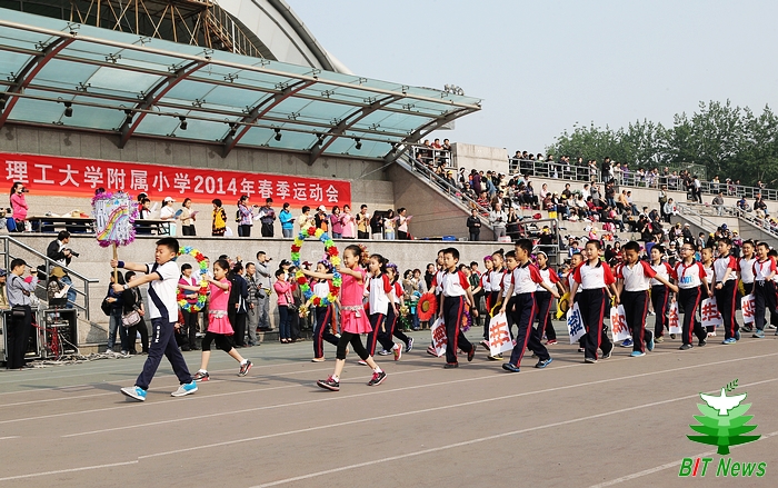 伴著明媚的春光,理工附小迎來了一年一度的體育盛會。4月30日清晨,大學(xué)東操場上聚集了附小的620余位小同學(xué),他們身穿運動裝,精神抖擻地步入會場。