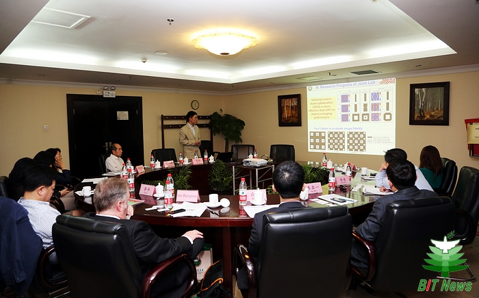 光電聯(lián)合實(shí)驗(yàn)室負(fù)責(zé)人李艷秋教授委托馬旭教授匯報(bào)了前期雙方合作協(xié)議的規(guī)定的教學(xué)和研究工作進(jìn)展。2013年9月,光電聯(lián)合實(shí)驗(yàn)室獲得了明導(dǎo)電子美國總部的項(xiàng)目資助,產(chǎn)出了國際領(lǐng)先的科研成果,有力地推動了雙方實(shí)質(zhì)性合作。同時(shí)雙方還在研究生聯(lián)合培養(yǎng)等方面取得了實(shí)質(zhì)性進(jìn)展。目前,明導(dǎo)電子公司為光電學(xué)院的3名研究生提供了教學(xué)實(shí)踐的實(shí)習(xí)崗位。經(jīng)過雙方的共同努力,光電聯(lián)合實(shí)驗(yàn)室各項(xiàng)工作進(jìn)展順利,逐步深化了雙方在產(chǎn)、學(xué)、研、用各方面的合作。隨后,郝群教授和范明輝總經(jīng)理為光電聯(lián)合實(shí)驗(yàn)室正式成立舉行了揭牌儀式。會后,來賓到7號教學(xué)樓參觀了光電聯(lián)合實(shí)驗(yàn)室,再次深入交流了產(chǎn)、學(xué)、研、用的合作,對實(shí)驗(yàn)室的管理、教學(xué)和科研給予充分肯定。