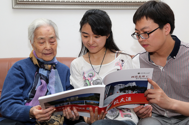 在看望中,徐特立獎學(xué)金獲獎學(xué)生代表胡傳剛和韓婷對照《畫說北理工》畫冊里面的校園風(fēng)光,向老校友介紹了學(xué)校的變化,同時感謝老校友省吃儉用資助獎勵北理工的優(yōu)秀學(xué)子。
