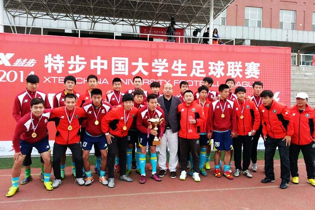 2013-2014賽季“特步”中國大學(xué)生足球聯(lián)賽北方賽區(qū)決賽于5月11—18日在東北師范大學(xué)舉行,我校足球隊克服中甲和大學(xué)生聯(lián)賽雙線作戰(zhàn)的困難,在九天打了八場比賽的情況下,勇奪“特步”中國大學(xué)生足球聯(lián)賽北方賽區(qū)冠軍,從而取得參加全國總決賽的資格。