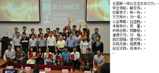 管理與經(jīng)濟(jì)學(xué)院“十佳大學(xué)生”評(píng)選活動(dòng)自1996年開展以來,18年間樹立了上百位優(yōu)秀學(xué)生典型?;顒?dòng)堅(jiān)持立德樹人,加強(qiáng)社會(huì)主義核心價(jià)值體系教育,完善中華優(yōu)秀傳統(tǒng)文化教育,增強(qiáng)學(xué)生社會(huì)責(zé)任感、創(chuàng)新精神和實(shí)踐能力。近年來學(xué)院“十佳大學(xué)生”評(píng)選工作結(jié)合我校育人目標(biāo)和我院人才培養(yǎng)特色,進(jìn)一步完善了青春榜樣的選樹機(jī)制,以身邊的事跡感染青年、鼓舞青年,成為大學(xué)生身邊可學(xué)、可敬、可比的青春榜樣,鼓勵(lì)和引導(dǎo)大學(xué)生的全面發(fā)展和個(gè)性成長。