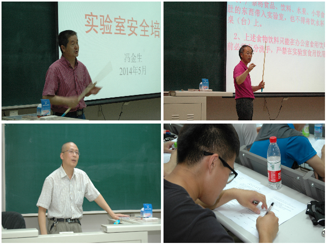 2014年5月26日,化學(xué)學(xué)院在研究生樓405教室舉辦了院級安全培訓(xùn)。學(xué)院主管實驗室副院長支俊格老師主持了培訓(xùn),學(xué)院黨委書記趙文祥出席并發(fā)表了動員講話。學(xué)院實驗中心副主任鄭傳明老師用風(fēng)趣幽默的語言為學(xué)員們做了深入淺出、切合學(xué)院教學(xué)科研實際的實驗室安全培訓(xùn)。培訓(xùn)結(jié)束后,學(xué)院組織了安全考試。