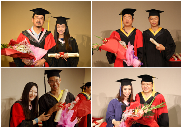 在悠揚的國歌聲中,畢業(yè)典禮暨學位授予儀式正式開始。設(shè)計學院副院長姬勇宣讀了2014屆夏季畢業(yè)生獲得學位者名單,黨委書記郭宏宣讀了優(yōu)秀畢業(yè)生名單,并為畢業(yè)生贈送了畢業(yè)紀念衫,8名學生代表向教師代表獻花以謝師恩。