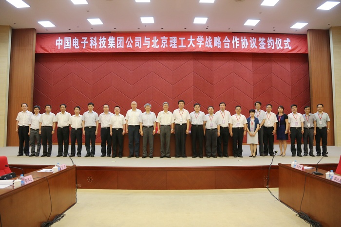 2014年7月8日,北京理工大學與中國電子科技集團公司戰(zhàn)略合作協(xié)議簽約儀式在中國電子科學研究院舉行。中國電子科技集團公司總經(jīng)理熊群力、北京理工大學黨委書記郭大成分別發(fā)表講話,北京理工大學校長胡海巖、中國電子科技集團公司黨組書記樊友山代表雙方簽署協(xié)議。北京理工大學副校長楊樹興、陳杰,中國電子科技集團公司副總經(jīng)理左群聲出席簽約儀式。儀式由左群聲主持。