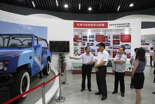 調(diào)研組首先參觀了北京汽車產(chǎn)業(yè)研發(fā)基地“汽車型”沙盤(pán)、北汽集團(tuán)概念車新能源車、北汽集團(tuán)歷史文化展覽館和北汽造型設(shè)計(jì)研究中心。北汽集團(tuán)黨委副書(shū)記、紀(jì)委書(shū)記李志立、副總經(jīng)理孔磊、黨委常委組織部兼人力資源部部長(zhǎng)高原等陪同參觀。