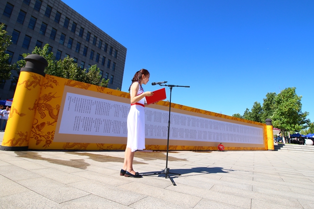 迎新現(xiàn)場設置了國學經(jīng)典誦讀,引導新生從傳統(tǒng)文化中思考立德修身的理念(本圖由校記者團提供)