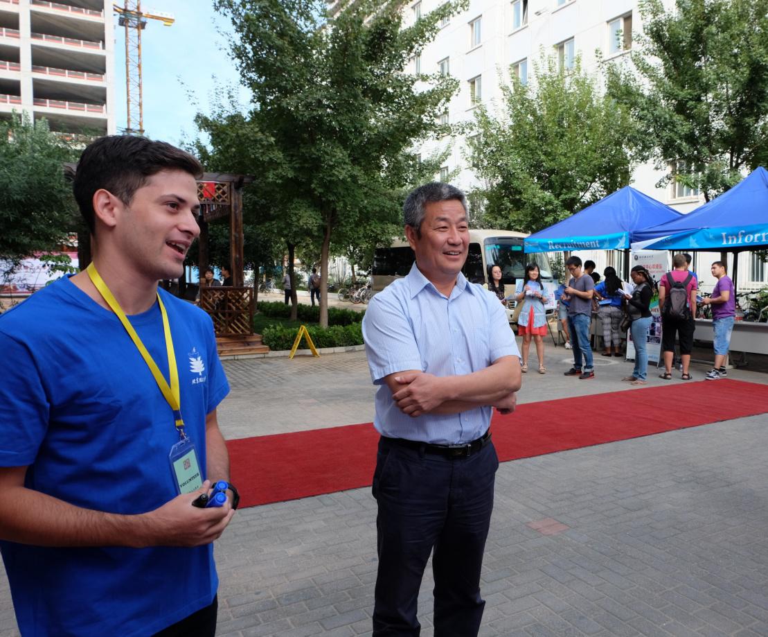 9月15和16日,校長胡海巖、副校長趙長祿分別前來視察迎新工作,參觀了新的留學(xué)生校外公寓—蘇州橋公寓,留學(xué)生中心主任汪瀅、副主任趙坤匯報(bào)了相關(guān)情況。胡校長在迎新現(xiàn)場與同學(xué)們親切交談,詢問了他們來校后的各項(xiàng)安排,鼓勵(lì)他們多和中國學(xué)生交流,盡快融入到學(xué)校的學(xué)習(xí)和生活中來。