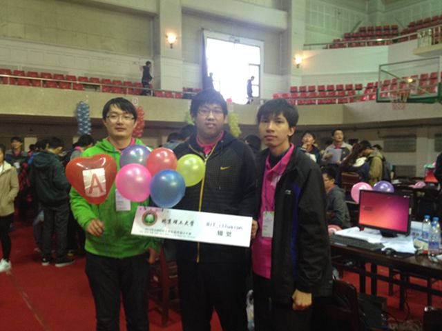 2014年10月11日-12日第39屆ACM國際大學(xué)生程序設(shè)計競賽亞洲區(qū)域賽(牡丹江)在牡丹江師范學(xué)院舉行,本次競賽共有來自全國各高校的150余支參賽隊伍、近500名參賽選手參加。由北京理工大學(xué)計算機(jī)學(xué)院傅天曉、易毅和軟件學(xué)院蘇琛組成的BIT_illusion隊經(jīng)過5小時的奮戰(zhàn),最終排名總分第三位,獲得金牌組季軍。繼2013年首次取得金牌組季軍后,再次創(chuàng)造了我校的最好成績。