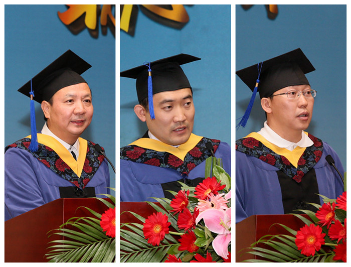周易同學、孫智同學、滕偉川同學代表分別代表EMBA、MPA、工程碩士畢業(yè)生發(fā)言,在發(fā)言中對學院三年來的培養(yǎng)之恩和老師的諄諄指導表達了誠摯感謝,祝福同學們在各自的事業(yè)上取得成績,祝福母校在建設(shè)世界一流理工大學的道路上節(jié)節(jié)攀升,祝福管理與經(jīng)濟學院在建設(shè)國際一流管理學院的過程中續(xù)創(chuàng)輝煌。