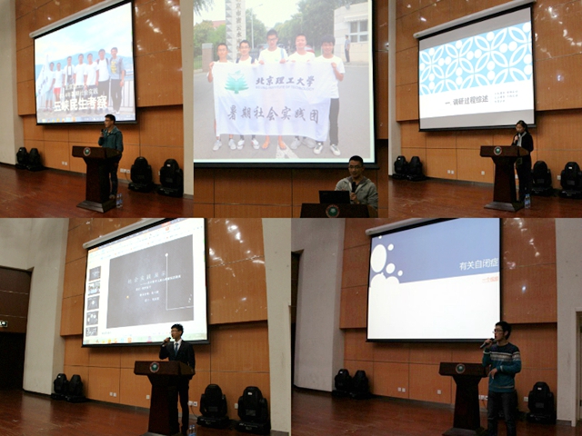 分享會開始之初,主持人為所有到場人員介紹了從暑期社會實踐發(fā)團儀式到本次成果交流會逾百天的實踐工作歷程,并播放了一段關(guān)于本次社會實踐歷程宣傳片,充分展現(xiàn)出本次社會實踐內(nèi)容的多樣以及實踐成果的豐富。接下來,5支社會實踐團隊分別從社會實踐團隊組建、立項籌備、前期準(zhǔn)備、中期實施、問卷制作、實踐調(diào)研中的問題、實踐體會和收獲等內(nèi)容全面展示了一支社會實踐團隊的運作全過程,為2014級學(xué)生開展社會實踐打開了思路,傳授了經(jīng)驗。