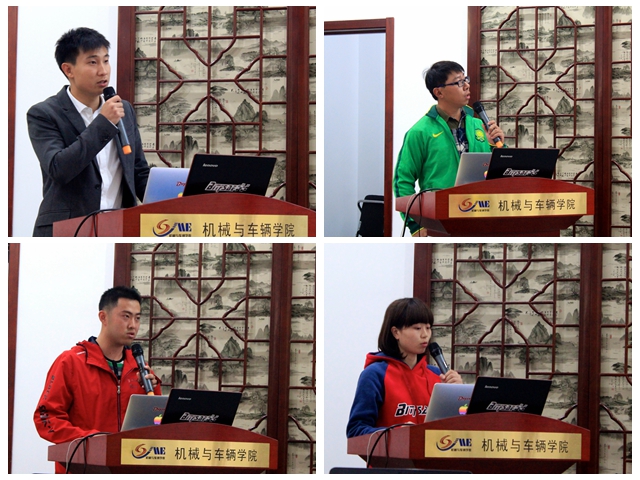 方程式賽車工作室負(fù)責(zé)人、機(jī)械與車輛學(xué)院2013級研究生董路寧帶領(lǐng)大家共同回顧了2014年的整體歷程,介紹了“技術(shù)骨干+后備梯隊(duì)”的隊(duì)伍建設(shè)情況、“穩(wěn)定+靈活”的總體技術(shù)路線、“技術(shù)研究+管理運(yùn)營”的日常管理模式,同時(shí),分析了國內(nèi)外兄弟高校近年來的發(fā)展概況和大學(xué)生方程式的技術(shù)趨勢。機(jī)械與車輛學(xué)院2010級本科生陳浩翰、張闖、葉山頂,機(jī)械與車輛學(xué)院2011級本科生劉旭澤,機(jī)電學(xué)院2010級本科生劉力源,設(shè)計(jì)與藝術(shù)學(xué)院2011級本科生陳南瑾分別作為各技術(shù)組骨干介紹了相關(guān)技術(shù)的演進(jìn)歷程、方案選擇過程及依據(jù)、未來技術(shù)建議,并實(shí)事求是地對2015年預(yù)期發(fā)展目標(biāo)做了分析;基礎(chǔ)教育學(xué)院2013級車輛工程專業(yè)本科生俞灝岑作為梯隊(duì)成員講述了“創(chuàng)新實(shí)踐引導(dǎo)課程學(xué)習(xí),理論儲備促進(jìn)實(shí)踐鍛煉”的過程和感受。指導(dǎo)教師代表張付軍教授對同學(xué)們一年來的成長和成果表示肯定,建議在今后的工作中一方面不斷學(xué)習(xí)他人之長,永遠(yuǎn)抱著學(xué)習(xí)的心態(tài)去追尋,另一方面也要注重理論學(xué)習(xí),從理論上尋找解決實(shí)踐問題的方法。
