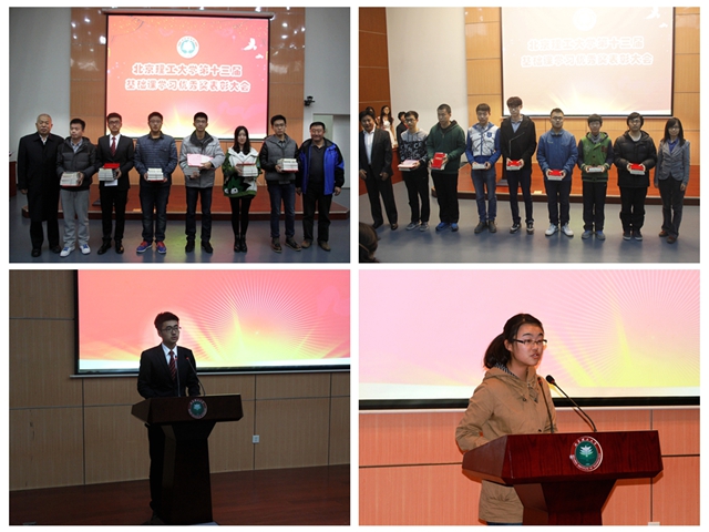 基礎(chǔ)教育學(xué)院常務(wù)副院長張青山宣讀了《北京理工大學(xué)第十三屆基礎(chǔ)課學(xué)習(xí)優(yōu)秀獎表彰決定》,飛行器設(shè)計(jì)與工程01721301班等11個班級和詹潔等224名學(xué)生分別榮獲集體獎和個人獎。隨后與會領(lǐng)導(dǎo)為受表彰集體和個人代表頒發(fā)了榮譽(yù)證書和獎勵書籍。